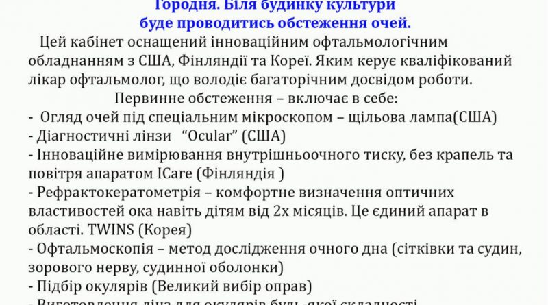 Читати даліУсі бажаючі можуть пройти офтальмологічний огляд у Мобільному офтальмологічному кабінеті, яке проходитиме з 29.03 по 31.03. 2021 року. Проводитиме його