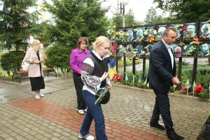Гості відвідали найболючіше місце громади — Алею Героїв, вшанували пам’ять полеглих хвилиною мовчання та поклали квіти до пам’ятного знаку. Також ознайомилися з роботою ліцею №2, укриттям та мультифункціональним освітнім центром. Саме там гості стали свідками арт-терапевтичного заняття з дітьми, яке проводили керівниця центру Олеся Беребера разом зі своєю колегою.