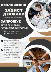 Громадська організація «Захист Держави» запрошує актив Городнянської громади на робочу зустріч щодо реалізації спільних проєктів
