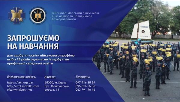 Читати даліВійськово-морський ліцей імені віце-адмірала Володимира Безкоровайного запрошує на навчання юнаків та дівчат після закінення 9 класу. З початку повномасштабного вторгнення
