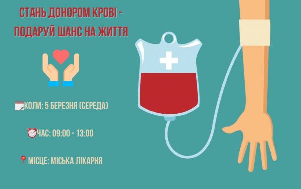 Читати далі05 березня (середа) до нашої громади завітає Чернігівський центр крові. Просимо усіх небайдужих долучитися до збору крові для Збройних сил