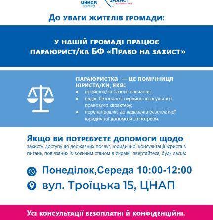 Читати даліПараюристка — це помічниця юриста/ки, яка: • пройшов/ла базове навчання; • надає безоплатні первинні консультації правового характеру; • перенаправляє до