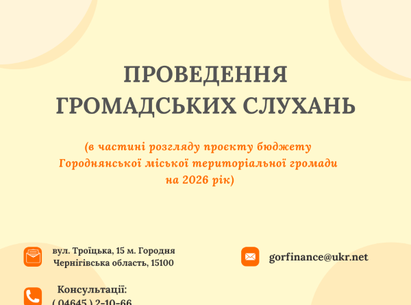 Читати даліВідповідно до рішення сорокової (позачергової) сесії Городнянської міської ради восьмого скликання від 26 листопада 2025 року “Про затвердження Положення про