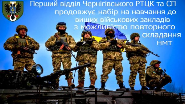 Перший відділ Чернігівського РТЦК та СП продовжує набір на навчання до вищих військових закладів з можливістю повторного складання НМТ